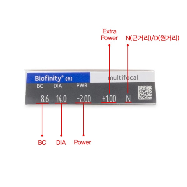 | 사양 | 1개월 착용 멀티포컬용 렌즈 | ||